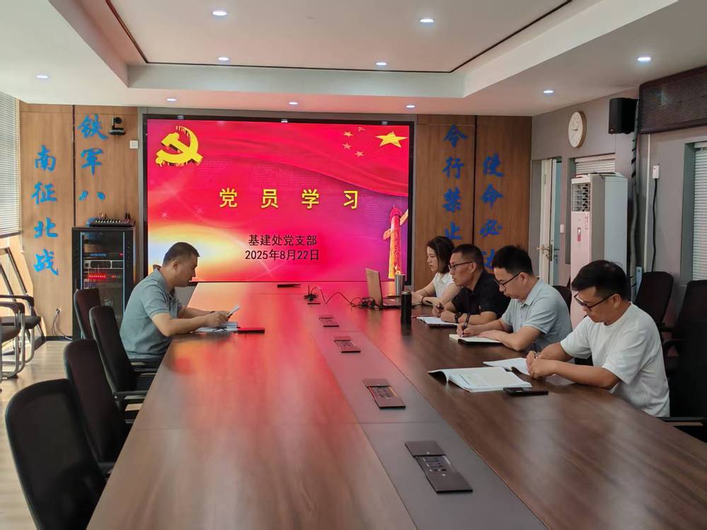 8月22日上午,基建处党支部党员在新校区建设工地会议室组织召开政治理论学习会,本次学习会由党支部书记蒋益锋同志主持。