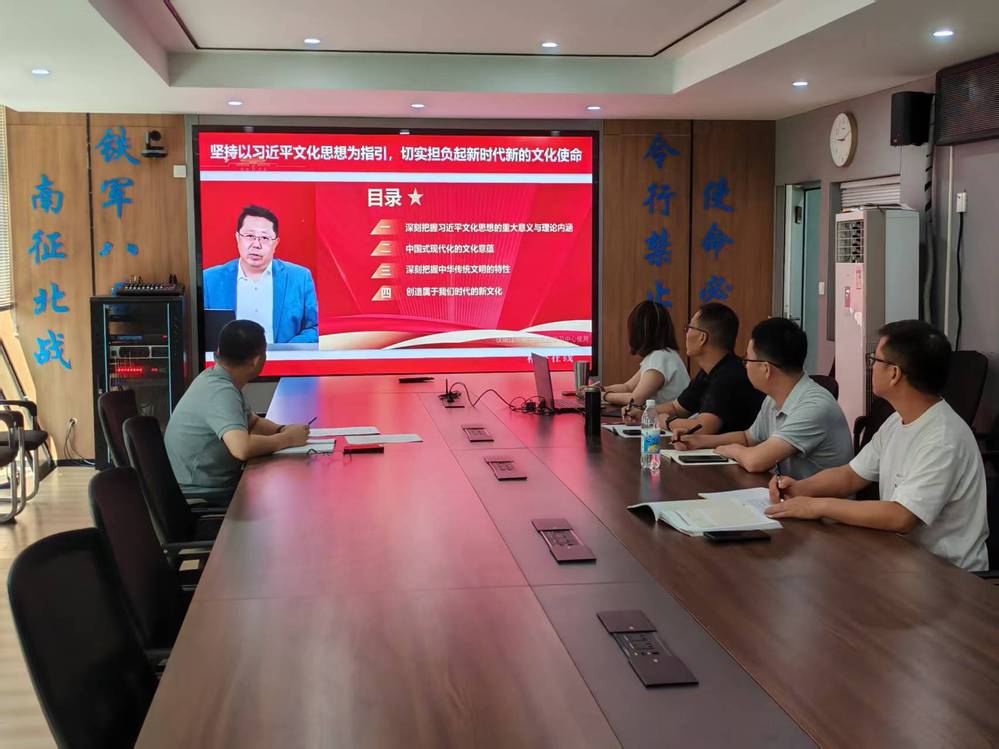 会上,蒋益锋同志领学了《习近平文化思想学习纲要》和《高校如何贯彻习近平文化思想》。与会同志集体学习了《坚持以习近平文化思想为指引,切实担负起新时代新的文化使命》。为巩固深入贯彻中央八项规定精神学习教育成果,与会同志集中观看了专题警示教育片《反腐为了人民》,该片系统揭露了内蒙古自治区赤峰市公共资源交易领域发生的系列腐败案件,具有深刻的警示教育意义。